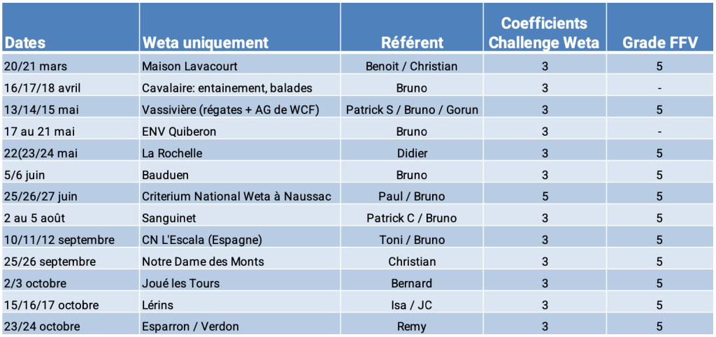 • CALENDRIER 2022 WETA CLASSE FRANCE février 13, 2022